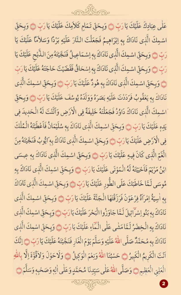 By the name with which Khidr called out to you and made you walk on water, I ask of you in the honour of that name; by the name with which Muhammad, peace be upon him, called out to you in the cave and you saved him, I ask of you in the honour of that name. Undoubtedly, you are generous and great. Allah is sufficient for us. What a beautiful guardian He is. The power and strength to do good and to avoid evil come only from the Exalted and Great Allah. May Allah support our master Muhammad, his family, and his companions, and grant them security! AMEN"